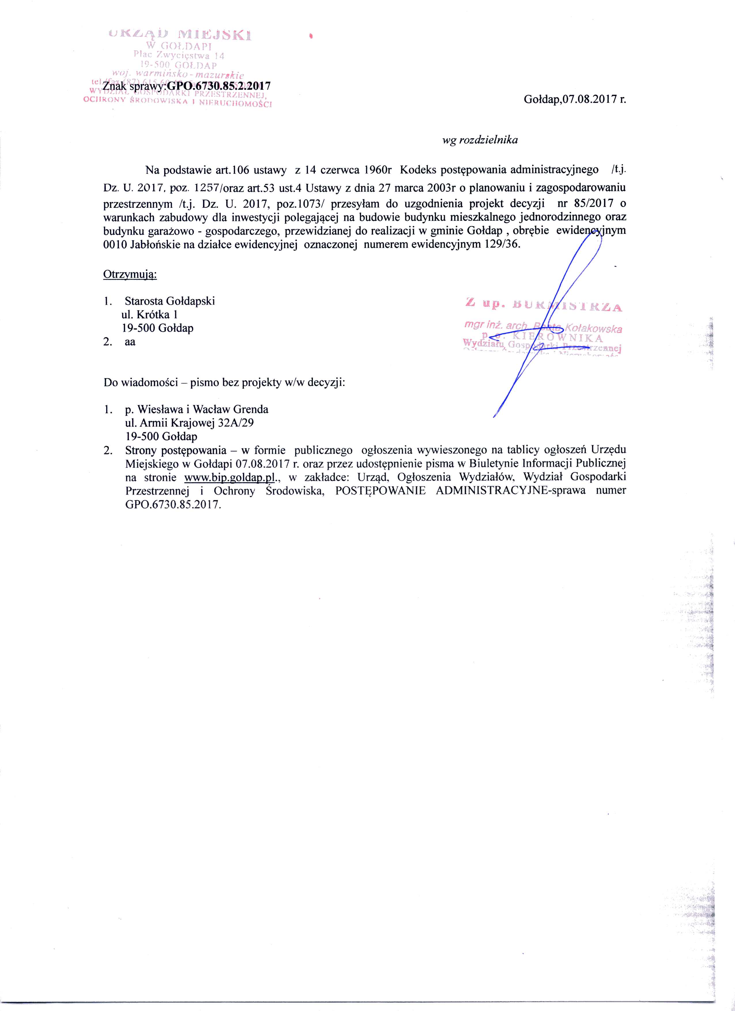 POSTĘPOWANIE ADMINISTRACYJNE-sprawa numer GPO.6730.85.2017