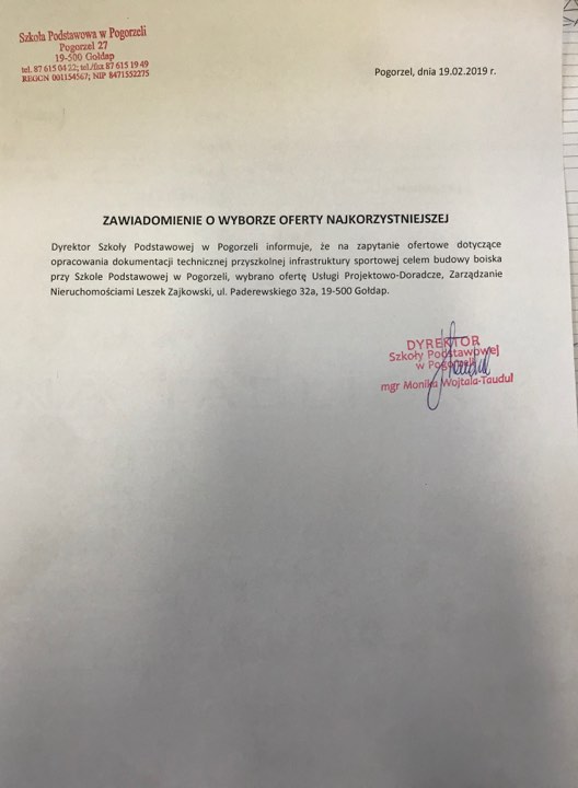 Zawiadomienie o wyborze oferty