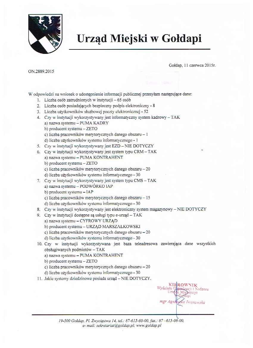 BR.1431.26.2015 - Wniosek o udostępnienie informscji publicznej dot. systemów elektronicznych wykorzystywanych w urzędzie
