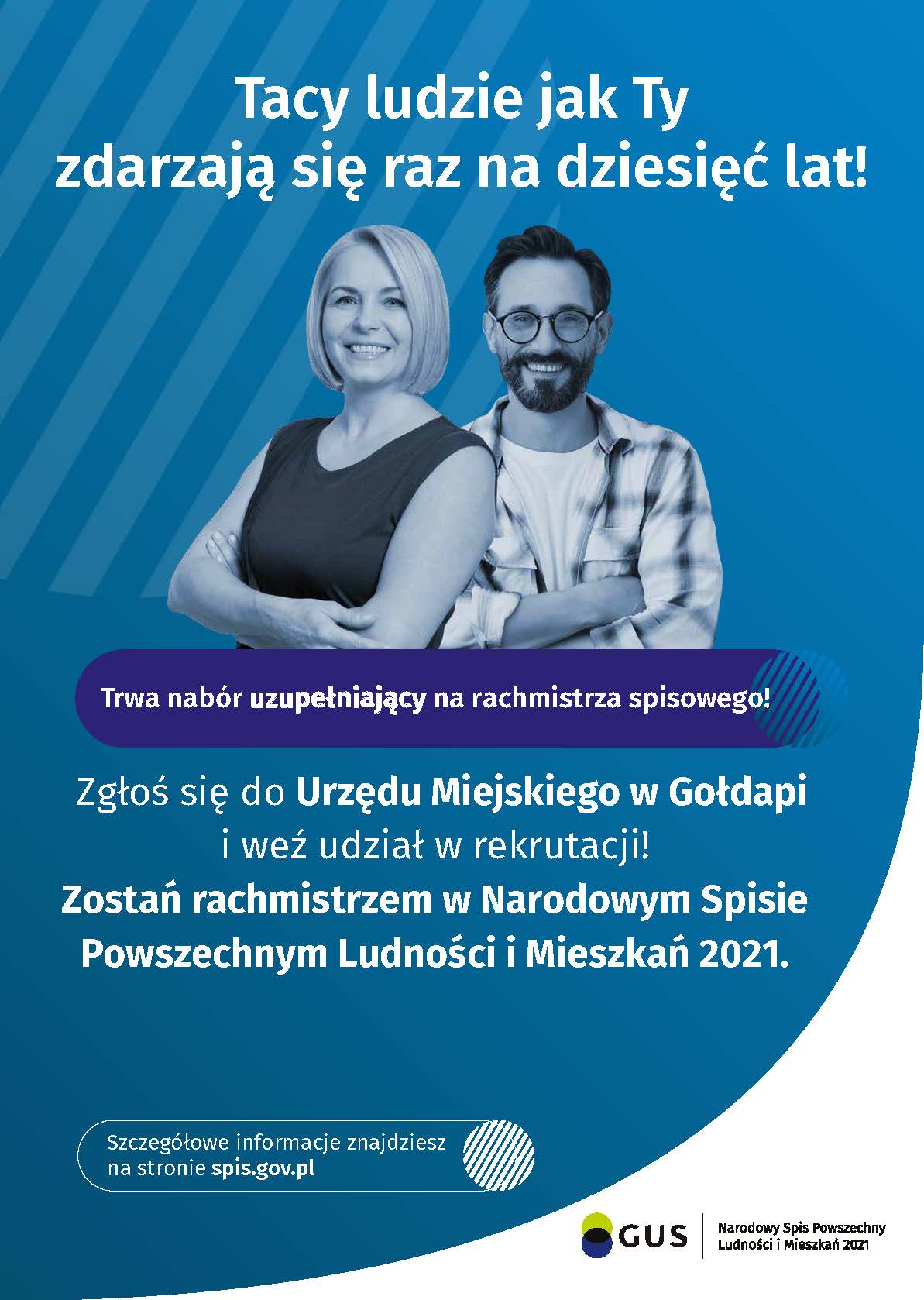 Pan Tomasz Rafał Luto - Gminny Komisarz Spisowy w Gołdapi ogłasza otwarty i konkurencyjny nabór uzupełniający kandydatów na rachmistrzów spisowych, którzy będą wykonywać prace spisowe w ramach Narodowego Spisu Powszechnego Ludności i Mieszkań (NSP) 2021 na terytorium Rzeczpospolitej Polskiej w 2021 r.